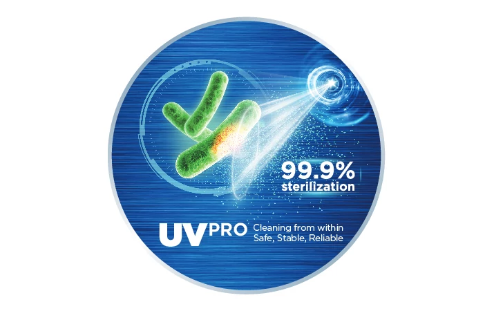 Σε αντίθεση με την κανονική λειτουργία αυτοκαθαρισμού, στη λειτουργία αποστείρωσης 56°C ο εναλλάκτης θερμότητας θερμαίνεται στους 56°C για 30 λεπτά, σκοτώνοντας έτσι έως και το 99,9% των βακτηρίων μετά από δύο μόνο κύκλους χρήσης.